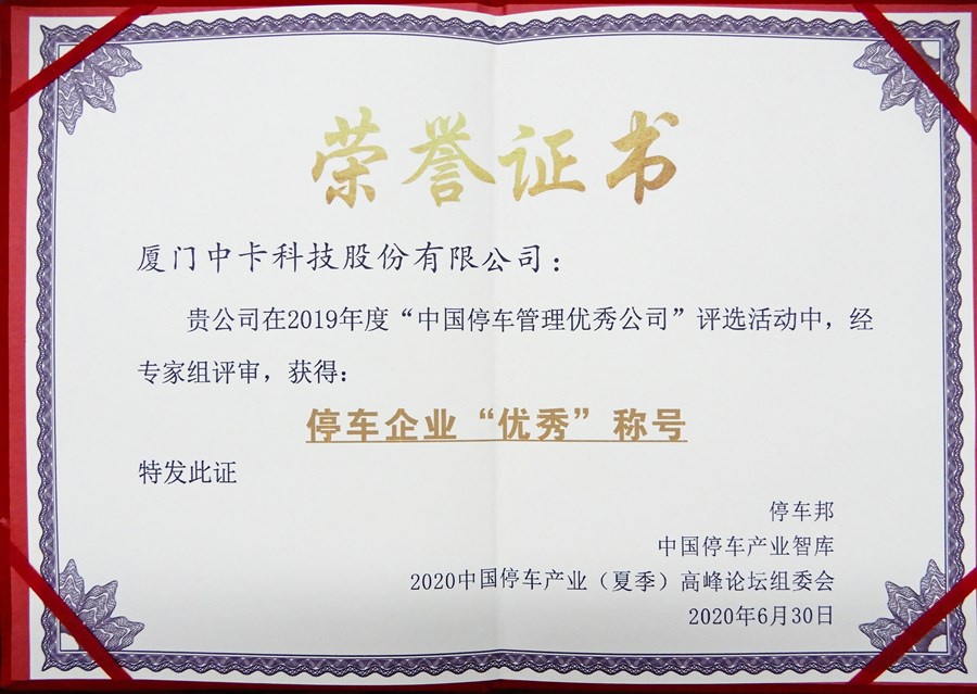 近日,2020中國(guó)停車(chē)產(chǎn)業(yè)(夏季)高峰論壇暨2019年度“中國(guó)停車(chē)管理優(yōu)秀公司”頒獎(jiǎng)典禮在青島隆重舉行。中卡科技股份有限公司(以下簡(jiǎn)稱:中卡科技)憑借多年深耕城市級(jí)智慧停車(chē)領(lǐng)域的專業(yè),榮獲2019年度停車(chē)企業(yè)“優(yōu)秀”稱號(hào)。